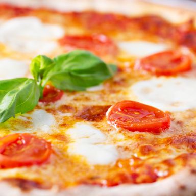 Tomatensauce, Frische Tomatenscheiben, Mozzarella, Ruccola, Balsamico-Creme (a,g)